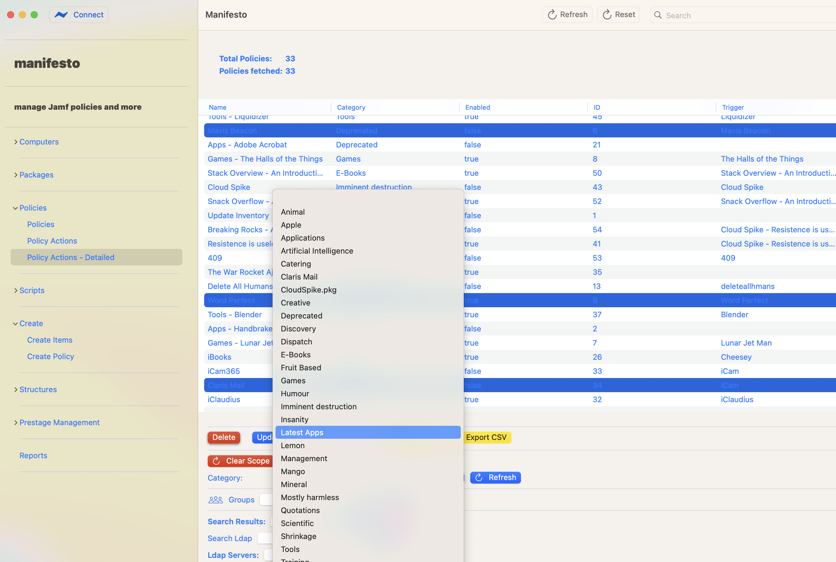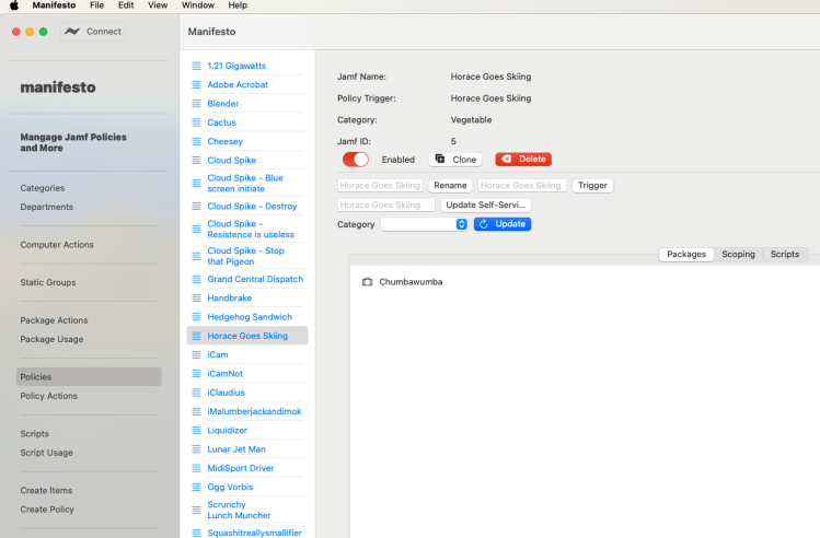 - Manifesto is a tool to help with repetitive tasks in Jamf and to bring together features spread over multiple pages.